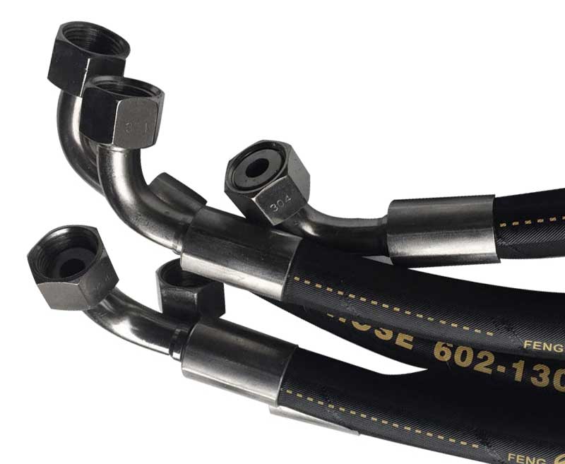 高壓編織膠管由耐液體的合成橡膠內(nèi)膠層、中膠層、Ⅰ或Ⅱ或Ⅲ層鋼絲編織增強(qiáng)層、及耐天候性能優(yōu)良的合成橡膠外膠層組成。