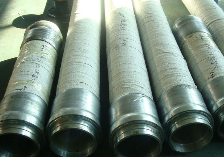 高壓鉆探膠管用途:適用于石油鉆探.泥漿輸送系統(tǒng)中鉆井立管頂部與可垂直運動的水龍頭之間作柔性連接的水龍帶.和適用于鉆井泵管線與立管之間用于調(diào)整安裝誤差.以便于連接和隔絕震動。適用于在高壓條件下大量輸送從旋轉(zhuǎn)式鉆探設(shè)備泵出且最低苯胺點位66°C的水基或油基泥漿。且能防硫化氫的侵蝕.油田井下作業(yè)輸送水.油.泥漿等高壓介質(zhì)。結(jié)構(gòu):由內(nèi)膠層或不銹鋼鎧裝內(nèi)管.碳纖維增強層.中膠層.鋼絲增強層(鋼鏈線增強層).碳纖維外膠層組成。類型:產(chǎn)品分為鋼絲增強型.鋼鏈線增強型。